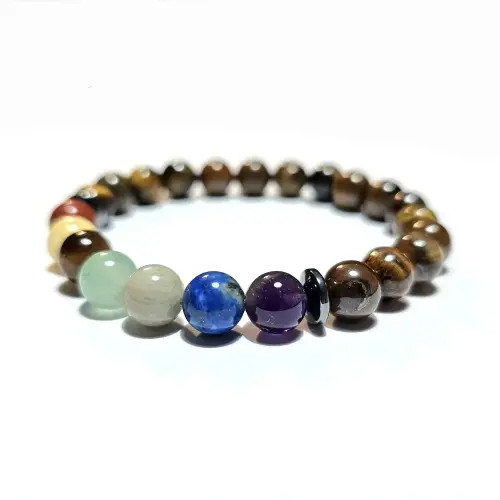 Pulseira 7 Chakras com Olho de Tigre Rolada